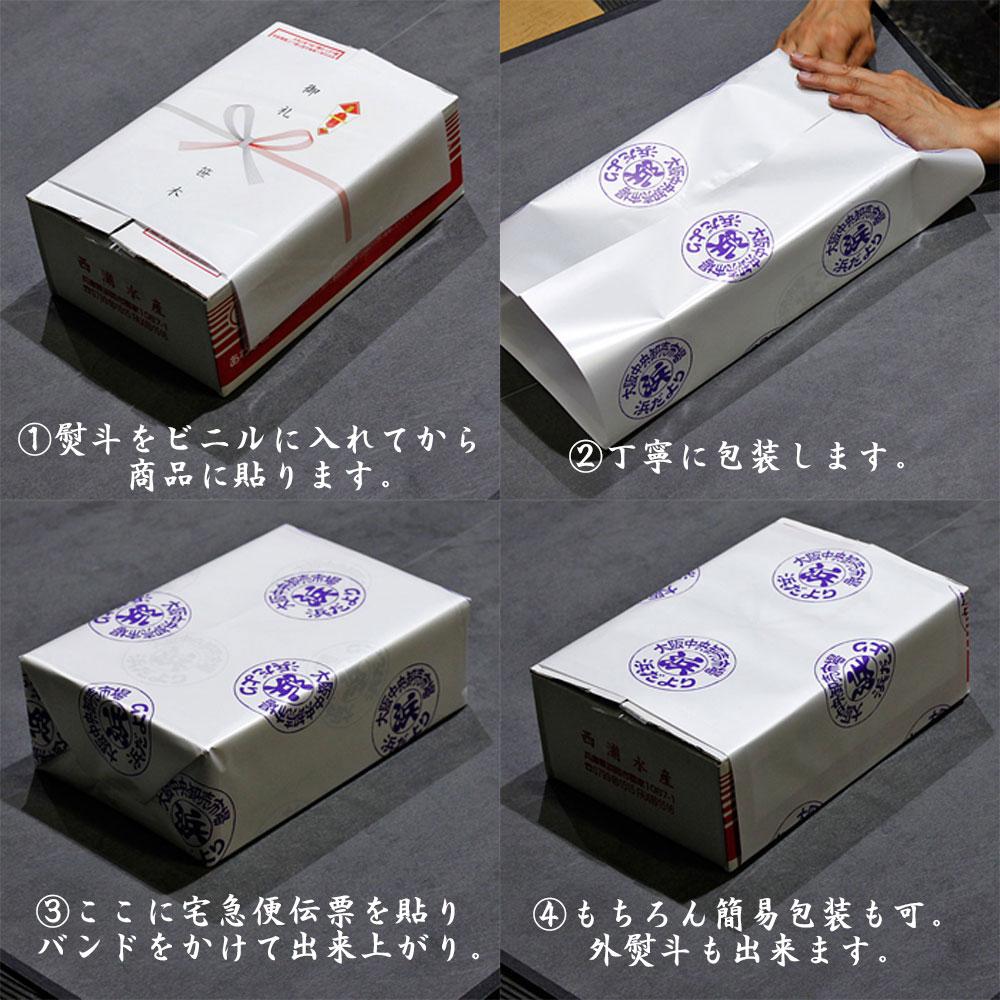 | 商品説明 | ■同梱可能■ ・商品の量に合わせた発泡スチロールの箱にて密封保冷します。 ・同梱許容量を超える場合は箱を追加します。(最大内寸50cm×30cm×20cm) ■送料■ ・送料は大きさに関わらず1箱につき1,200円です。複数の場合、個数分のご負担となります。 ※北海道は2,100円/1箱、沖縄・離島地域は2,600円/1箱です。 ※商品発送作業時に箱に収まりきらないと判断した場合は箱数が増えるため、 決済時の送料と実際の請求金額が変わる場合がございます。予めご了承ください。 ■簡易包装■ 無料にて熨斗紙・簡易包装出来ます。 ご注文の際にご指示ください。 ■日時指定■ 出荷日の翌日以降でご指定いただけます。 [午前中/14~16/16~18/18~20/19~21時お届け] ※地域によって翌々日以降しか指定できない地域がございます。該当地域の方には当方より連絡いたします。 ※天候・交通事情により遅れる場合があります。予めご了承ください。 ■発送方法■ クロネコヤマト【クール便】にて発送します。 ■商品到着■ 到着後はすぐにご開封いただき 冷凍庫・冷蔵庫に入れてください。 |