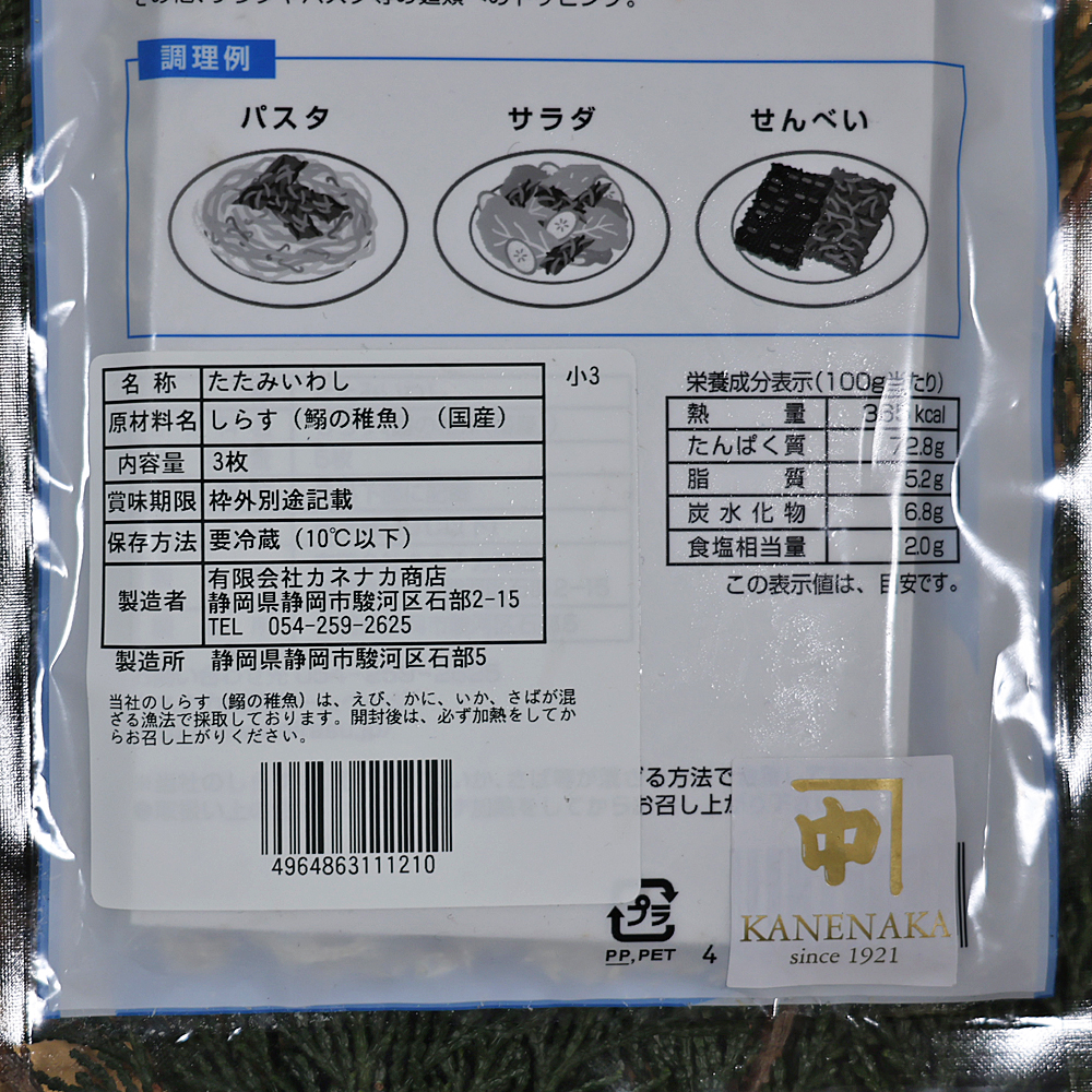 | 内容量 | たたみいわし×3枚(1パック) | ||