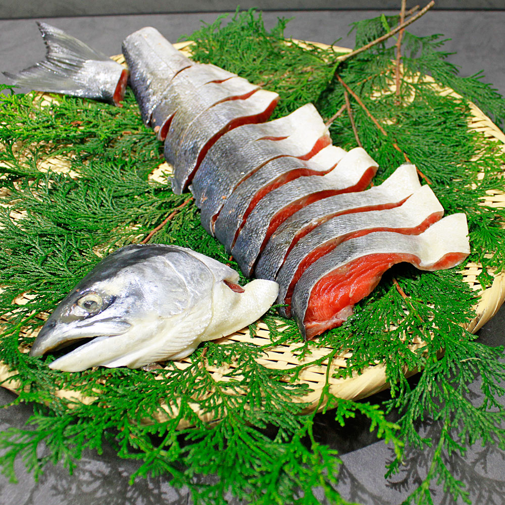 | 内容量 | 紅鮭:半身(1尾1.7㎏の半身) 醤油いくら:80g×3カップ |