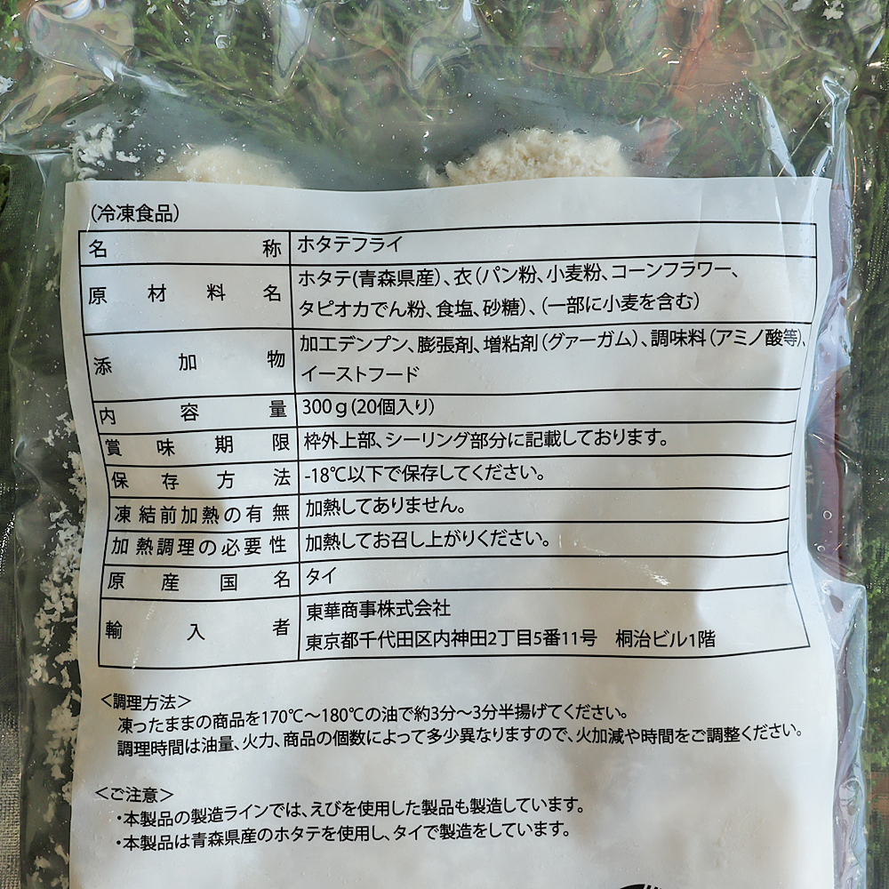 | 内容量 | 帆立フライ×1袋(20粒) | ||